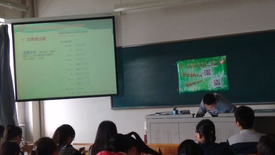 首先通过PPT形式,告诉同学们注册时需要注意的事项,随后组织大家扫二维码或网页注册的形式成为网络志愿者。最后由宣誓人引领大家宣誓,表明同学们志愿服务的决心。